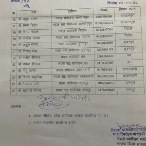 भाजपा ने जारी की अपने सोशल मीडिया जिला सह संयोजक, मंडल संयोजक एवं विधानसभा संयोजको की सूची