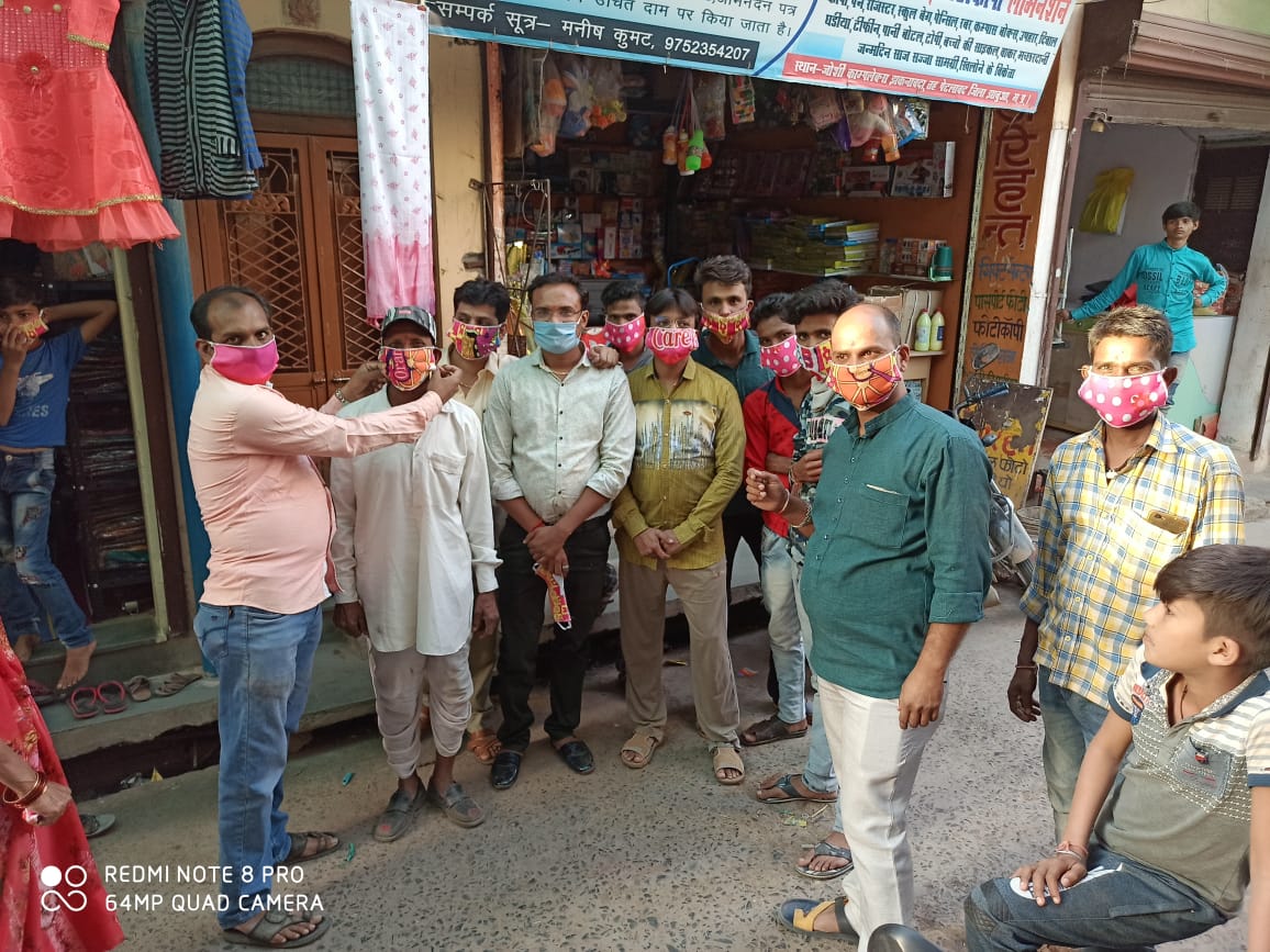 विश्वव्यापी महामारी बीमारी कोरोना वायरस बीमारी सभी जगह तेजी से खेल रही है इसको देखते हुए राष्ट्रीय मानवाधिकार एवं महिला बाल विकास आयोग की टीम द्वारा दुकानों पर जाकर एवं राहगीरों को निशुल्क मास्क वितरण किए साथ ही आमजन को मास्क लगाने की अपील की व बताया कि मास्क लगाने से एवं बार बार हाथ धोने से इस बीमारी से बचा जा सकता है इस अवसर पर राष्ट्रीय मानवाधिकार एवं महिला बाल विकास आयोग के प्रतिनिधि प्रदेश अध्यक्ष मनीष कुमट ,संभागीय सचिव अरविंद राठौर, गोपाल सोनी, गोपाल विश्वकर्मा, शुभम कोटडिया ,अंकित नगरिया, अंकित देवड़ा, सोहनलाल लववंशी, भगवान सिंह चौहान, निलेश लोधा, भोला देवड़ा उपस्थित थे