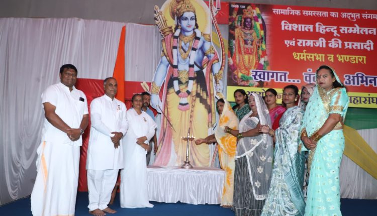 झाबुआ। ना कोई अतिथि ना कोई मंच और ना ही कोई वीआईपी व्यवस्था जी हां हम बात कर रहे हैं सामाजिक महासंघ के तत्वाधान में आयोजित होने वाले आगामी 7 नवंबर के हिंदू सम्मेलन राम जी की प्रसादी एवं महा प्रसादी भंडारा की तैयारी को लेकर आयोजित की गई बैठक की। जिसमें सामाजिक समरसता का संदेश देते हुए शहर के विभिन्न समाजों एवं सामाजिक संगठनों की बड़ी बैठक का आयोजन बुधवार को स्थानीय पैलेस गार्डन पर किया गया जिसमें प्रभु श्री राम के पोस्टर एवं भगवा ध्वज को ही अतिथि बनाया गया था कार्यक्रम के दौरान दीप प्रज्वलन किन्नर समाज की बहनों एवं ब्रह्मा कुमारी बहनों से करवाकर किया गया।