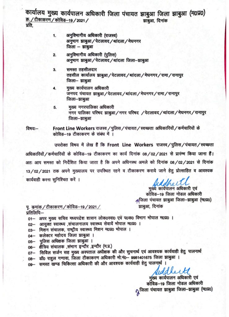Corona Vaccine in Jhabua : फ्रंट लाइन वर्करों को आज से लगाया जाएगा कोरोना का टीका