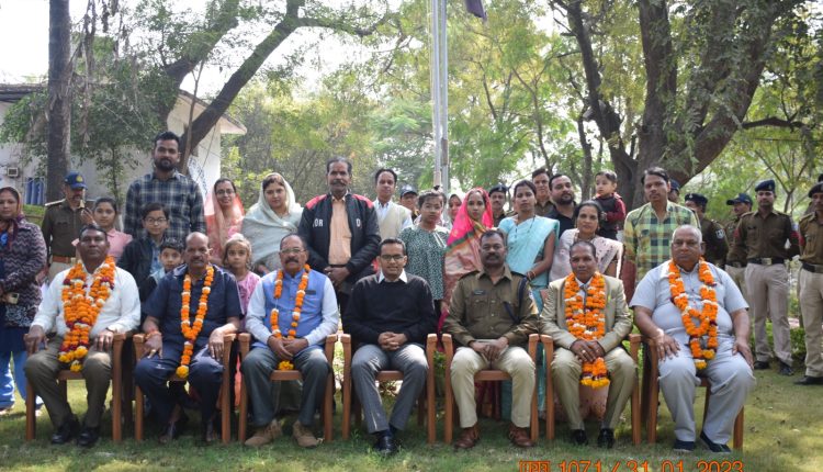 पुलिस अधीक्षक झाबुआ द्वारा उनको उज्जवल भविष्य की शुभकामनाएं देकर उनको शाल और श्रीफल भेंट कर सम्मानित किया। इस अवसर पर अति. पुलिस अधीक्षक झाबुआ श्री प्रेमलाल कुर्वे एवं अन्य पुलिस अधिकारी/कर्मचारी द्वारा फूल माला पहनाकर सम्मानित किया। इस दौरान सेवानिवृत्त कर्मचारियों के परिवारजन मौजूद रहे।