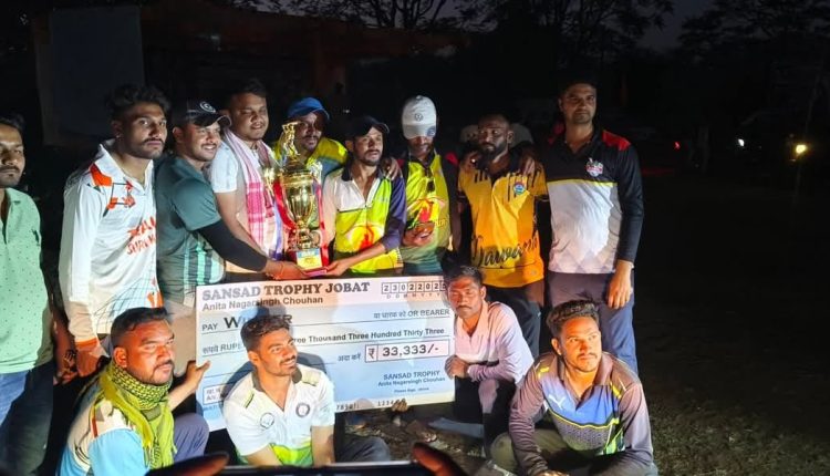 जोबट नगर की पुलिस ग्राउंड परिसर में सांसद ट्रॉफी ओपन टेनिस बॉल क्रिकेट टूर्नामेंट का आयोजन भारतीय जनता युवा मोर्चा के तत्वाधान में आयोजित किया गया था जहां पर शानदार क्रिकेट मैच का आयोजन हुआ जहां 15 टीमों ने भाग लिया और अपनी प्रतिभा क्रिकेट मैदान में दिखाई है जिस्म की जोबट के अलावा अलीराजपुर झाबुआ धार खरगोन बड़वानी मनावर और कुक्षी की टीमों ने भाग लिया था यहां पर प्रथम पुरस्कार सांसद अनीता नागर सिंह चौहान के द्वारा 33333₹ व सांसद ट्रॉफी प्रथम विजेता टीम को प्रदान किया गया है, जबकि द्वितीय पुरस्कार नगर परिषद अध्यक्ष राहुल मोहनिया द्वारा 16666₹ जोबट ड्रीम किलर को प्रदान किया गया और तृतीय स्थान पर आने वाली टीम को नितेश अग्रवाल द्वारा 7777₹ पुरस्कार प्रदान किया गया और इसी तरह यहां पर अन्य प्रकार के खिलाड़ी को भी नगद पुरस्कार सम्मानित करते हुए ट्रॉफी सभी को प्रदान की है और यहां पर रोमांचक मैच देखने को मिला जिसमें बड़ी संख्या में आसपास के क्रिकेट प्रेमी यहां पहुंचकर सांसद ट्रॉफी टूर्नामेंट का आनंद लिया है।