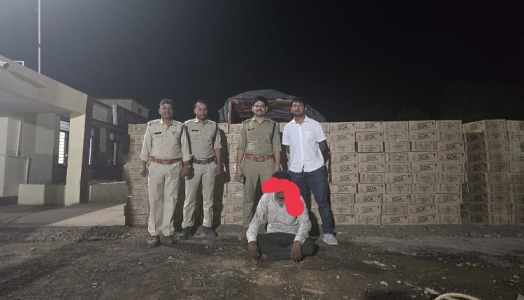 पुलिस अधीक्षक अलीराजपुर राजेश व्‍यास ने बताया कि थाना जोबट क्षैत्रान्‍तर्गत दिनांक 17.04.2025 की शाम थाना प्रभारी जोबट निरीक्षक विजय वास्‍कले को कस्‍बा/देहात भ्रमण के दौरान मुखबीर ‌द्वारा सूचना प्राप्त हुई कि बाग रोड जिला धार तरफ से जोबट की ओर अवैध शराब परिवहन संबंधी वाहन आ रहा है, तभी अनुविभागीय अधिकारी पुलिस जोबट श्री नीरज नामदेव के मार्गदर्शन मे थाना प्रभारी जोबट एवं उनकी अधीनस्‍थ टीम के द्वारा मुखबीर द्वारा बताये मार्ग पर पहुंचकर अलीराजपुर जिले की सीमा पर बने पुलिस सहायता केन्‍द्र पर वाहन की घेराबंदी हेतु नाकेबंदी की गई, तभी पुलिस टीम को धार जिले के बाग की तरफ से जोबट की ओर ऑयशर वाहन आते हुये दिखाई दिया। पुलिस टीम के द्वारा ऑयशर वाहन क्रमांक MP09DP8603 को रोककर वाहन चालक का नाम/पता पूछते अपना नाम संजय पिता सोहन पंवार 27साल, निवासी 122 मेढकवास, देपालपुर जिला इंदौर का होना बताया। ऑयशर वाहन की तिरपाल हटाकर वाहन की तलाशी लेने पर वाहन में गोवा व्हिस्‍की कंपनी की बडी मात्रा मे पेटीयां भरी हुई थी, जिसके संबंध में वाहन चालक संजय से पूछताछ करते उसके द्वारा कोई संतोषप्रद जवाब नही दिया गया।