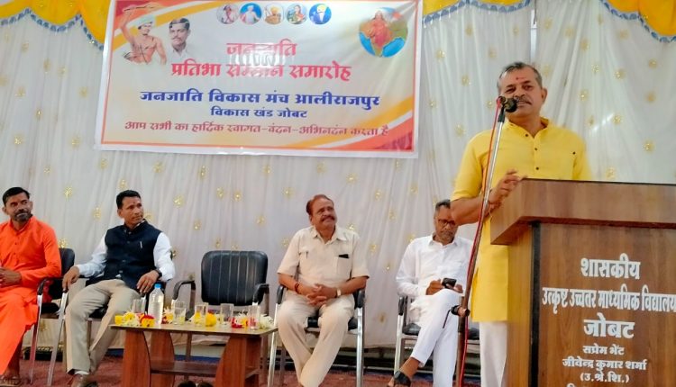 जोबट। सामुदायिक भवन परिसर में जनजाति समाज की प्रतिभाओं का सम्मान समारोह का आयोजन किया गया। प्रत्येक हाईस्कूल व हायर सेकेंडरी के प्रत्येक स्कूल के 5- 5 प्रतिभाओं का सम्मान किया है। जोबट विकासखंड के 27 विद्यालय के विद्यार्थी जो जनजाति समाज के थे उनका चयन किया। इस मौके पर 150 से अधिक विद्यार्थी सम्मान किया।