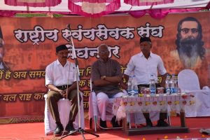 आरएसएस के पथ संचलन में नगरवासियों ने पुष्पवर्षा कर किया स्वागत