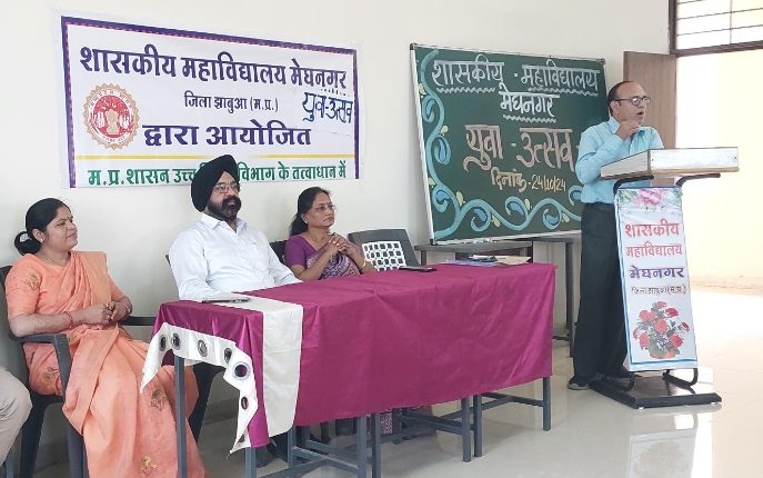 प्रत्येक व्यक्ति में एक प्रतिभा छुपी होती है उस प्रतिभा को बाहर लाने के लिए समय-समय पर उच्च शिक्षा विभाग द्वारा अवसर प्रदान किए जाते हैं ।ऐसा ही एक अवसर युवा उत्सव के रूप में शासकीय महाविद्यालय मेघनगर में मध्य प्रदेश शासन उच्च शिक्षा विभाग के निर्देशानुसार आयोजित किया गया। इस युवा उत्सव का उद्घ़ाटन  प्रमुख अतिथि के रूप में अग्रणी कॉलेज झाबुआ के प्राचार्य डॉ जे सी सिंहा द्वारा किया गया।