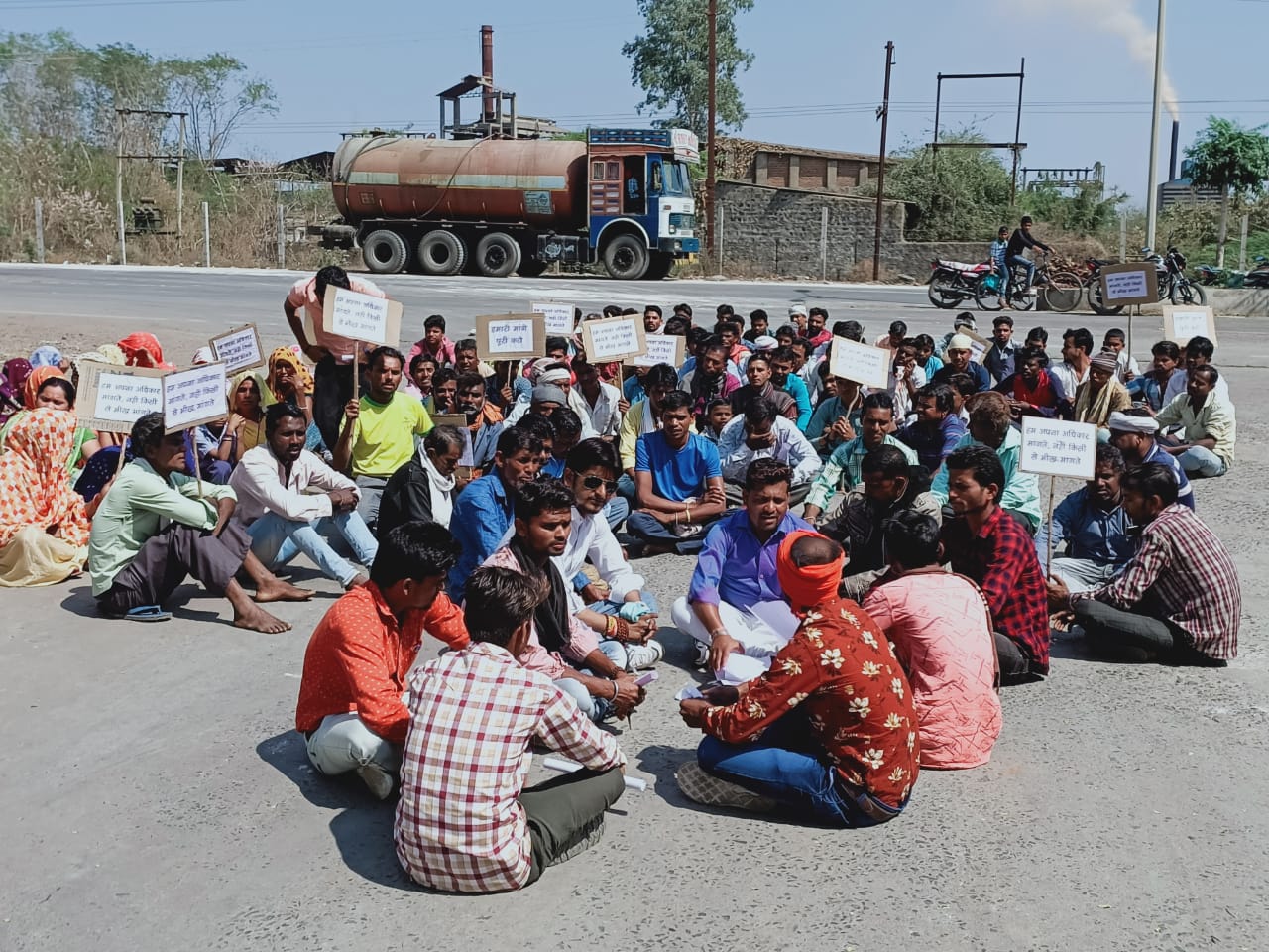 मेघनगर कृष्णा फास्फेट के गेट पर मजदूरों का धरना, कंपनी मैनेजर ने कहा 2015 मजदूरों ने इस्तीफा लेकर एडवांस लिया और छोड़ी नौकरी