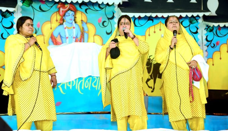 धर्म है तो हम जीवित है धर्म ही सही मार्गो को प्रशस्त करता है…. भगवान से जुडे भजनों को अपनी मीठी वाणी में गाकर भी देवी चित्रलेखा जी ने श्रीमद भागवत कथा के प्रमुख दृश्यों का वर्णन किया l उन्होने कहा कि धर्म बचेगा तो हम सुरक्षित रहेंगे गौ माता की सेवा सबको करनी ही चाहिए गौ माता वात्सल्य का श्रेष्ठ स्वरूप है l गौ सेवा करने से भगवान की कृपा प्राप्त होती है l भगवान राम और भगवान कृष्ण इस देश की पहचान है l बुधवार को फुटतालाब में चल रही श्रीमद भागवत कथा में श्रीकृष्ण जन्मोउत्सव मनाया गया l नंद उत्सव श्री कृष्ण जन्मोत्सव में लोगों का उत्साह चरमोत्कर्ष पर दिखाई दिया l इस अवसर पर सीमा सुरेश जैन और परिवार ने भगवान श्री कृष्ण के जन्म उत्सव में विशेष रूप से फूलों की वर्षा कर भगवान का अभिनंदन और स्वागत किया विशेष रूप से इस अवसर पर खिलौने और बिस्कुट के साथ महाप्रसादी भी वितरित की गई l भगवान को माखन और मिश्री का भोग लगाया गया सभी ने एक दूसरे को श्री कृष्ण जन्म उत्सव नंद उत्सव की बधाई दी अधिकतर महिलाएं पीले वस्त्र पहनकर आई थी सभी ने नृत्य कर भगवान श्री कृष्ण के जन्म की खुशियां मनाई।