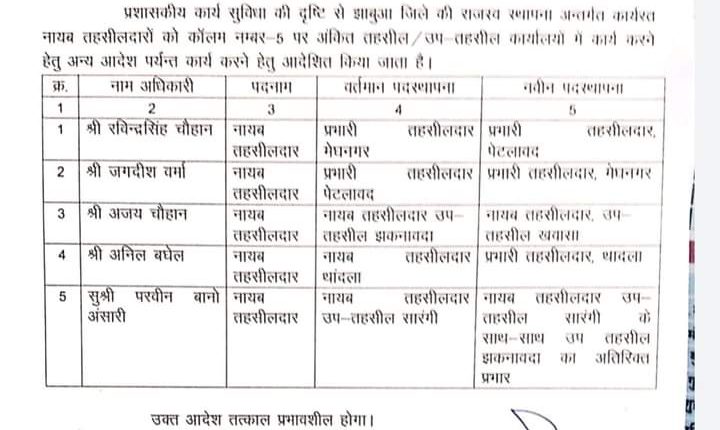 वर्मा होंगे नए तहसीलदार, चौहान को पेटलावद भेजा