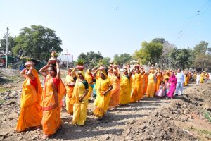 पांच दिवसीय प्रतिष्ठा महोत्सव का हुआ शुभारंभ,   उत्साह के साथ बालिकाएं व महिलाएं सिर पर कलश लेकर नजर आई