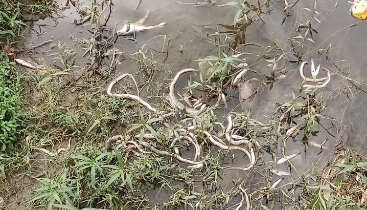 अभी से कुछ देर पहले कानवन रोड पर स्थित पम्पावती नदी में बिजली का तार टूट कर गिर जाने से नदी में करंट फैल गया, जिस वजह से नदी में मौजूद सांप, मछली एवं बकरी सहित अन्य जीवों की मौत हो गई है। घटना को लेकर मौके पर बड़ी संख्या में लोग जमा हो गए हैं। आपको बता दें कि इससे पहले भी नदी में एक साथ कई मछलियो और सांप के मरने की खबर सामने आई थी। एक बार फिर इसी तरह की घटना होना जन चर्चा का विषय है।