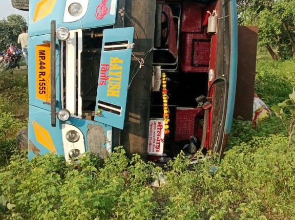 भैरूघाट टोल टैक्स के समीप यात्री बस हादसे का शिकार !