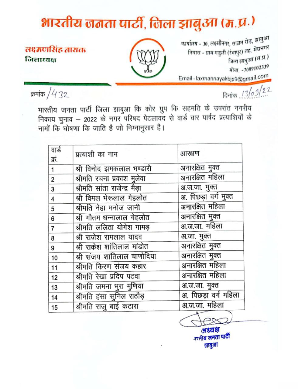 निकाय चुनाव: लंबे थकाऊ इंतजार के बाद आखिर पेटलावद में पार्षद प्रत्याशियों की अधिकृत सूची भाजपा ने की जारी…