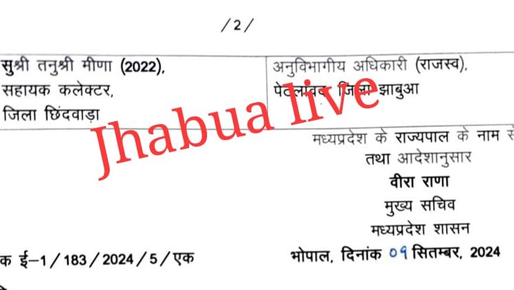 पेटलावद एसडीएम अनिल कुमार राठौर का हुआ तबादला…तनुश्री मीणा होंगी नई एसडीएम