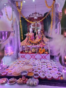 पेटलावद। गुरुवार को कुंज गली पेटलावद में स्थित श्री राधा कृष्ण मन्दिर पर गवली समाज द्वारा श्री राधा कृष्ण का अभिषेक और हवन कर व पूर्णाहुति में छप्पन भोग अर्पण किया गया इस दौरान विश्व की मंगलकामना के साथ पूर्णाहुति की गई। और सनातन धर्म में चौमासे में वर्जित सभी सब्जियों का भोग लगाकर सभी को भोजन प्रसादी वितरित की गई। श्री कृष्ण नवयुवक मण्डल के तत्वाधान में यह कार्यक्रम आयोजित किया गया था।