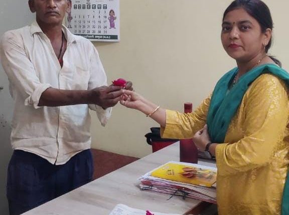मवेशी मालिक पर लगाया एक हजार रुपए का जुर्माना एवं गुलाब भेंट कर किया सम्मान