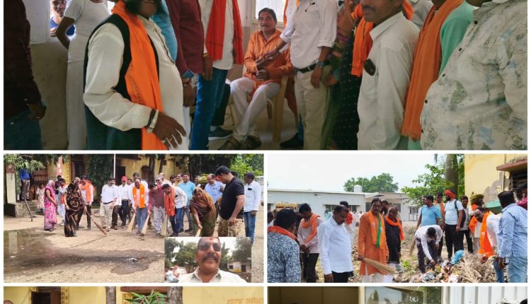 भाजपा कार्यकर्ताओं ने प्राथमिक स्वास्थ्य केंद्र परिसर में सफाई की, मरीजों को फल वितरित किए