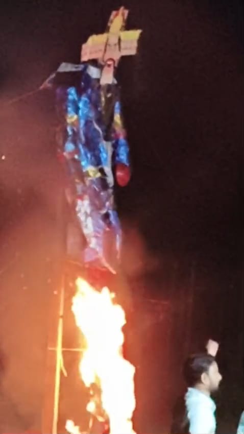 सारंगी में 31 फीट ऊँचे रावण का दहन, एक दशक बाद गूंजे विजयादशमी के जयकारे