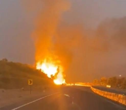 बड़ी खबर: सिलेंडर से भरा ट्रक पलटा, लगी आग, सिलेंडर फूट रहे, चालक की मौत की ख़बर