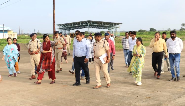 कलेक्टर ने सबसे पहले मुख्यमंत्री के आगमन के लिए बनाए जा रहे हेलीपैड स्थल का निरीक्षण किया। उन्होंने हेलीपैड पर सुरक्षा एवं बैरिकेडिंग की संपूर्ण व्यवस्था सुनिश्चित करने के निर्देश दिए। साथ ही मुख्यमंत्री के स्वागत हेतु निर्धारित व्यवस्थाओं को गरिमामय और सुचारू रूप से संपन्न करने पर विशेष जोर दिया। उन्होंने कहा कि हेलीपैड पर की जाने वाली हर व्यवस्था समय पर और व्यवस्थित ढंग से पूर्ण की जानी चाहिए, जिससे मुख्यमंत्री का आगमन बिना किसी बाधा और विलंब के संपन्न हो सके।