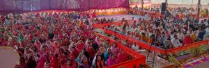 कथा के दौरान स्वामी जी ने सीताराम विवाह एवं चारों भाइयों—श्रीराम, लक्ष्मण, भरत व शत्रुघ्न—के विवाह प्रसंग का अत्यंत सुंदर, जीवंत एवं हृदयस्पर्शी वर्णन किया। जनकपुर में आयोजित दिव्य स्वयंवर का वर्णन करते हुए उन्होंने कहा कि भगवान श्रीराम द्वारा शिव धनुष भंग करना केवल शारीरिक सामर्थ्य नहीं, बल्कि मर्यादा, संयम और धर्म की विजय का प्रतीक है। धनुष भंग होते ही पूरा कथा पंडाल “जय श्रीराम” के जयघोष से गूंज उठा।