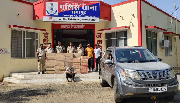इसी कड़ी में तारम्य में राणापुर पुलिस टीम को मुखबीर की सूचना मिली की पाडलवा क्षेत्र में एक XUV-500 कार जिसका रजिस्ट्रेशन क्रमांक GJ-03-EL-6577 में शराब भरी हुई है। जिसे हमराह फोर्स की मदद से घेराबंदी कर पकडा तो XUV-500 कार में रॉयल स्टेज, रायल चेलेंजर, मेकडोनाल्ड कम्पनी की शराब की पेटायां थी, आरोपी XUV-500 कार के चालक राकेश पिता शांतिलाल बारिया उम्र 40 साल निवासी कठ्ठीवाड़ा जिला आलीराजपुर के कब्जे से रॉयल स्टेज कंपनी की 19 पेटियां जिसमें करीब 164.160 बल्क लीटर कीमत 1,61,500 रुपये , रॉयल चेलेंजर कम्पनी की 06 पेटियाँ जिसमें करीब 51.840 बल्क लीटर किमती 51000 रुपये व मेकडोनाल्ड कम्पनी की 03 पेटीयँ जिसमें करीब 25.920 लीटर किमती 18000 रुपये सम्पुर्ण शराब कुल 241.920 बल्क लीटर किमती 2,30,500 रुपये एवं XUV-500 कार जिसका रजिस्ट्रेशन क्रमांक GJ-03-EL-6577  किमती 10 लाख रुपये सम्पुर्ण जप्ति कुल 12,30,500 रुपये की गई आरोपी चालक राकेश बारिया के विरुध्द आबकारी अधिनियम के तहत् थाना राणापुर पर अपराध क्रमांक 141/2025 धारा 34(2)36 आबकारी एक्ट का पंजीबध्द कर विवेचना में लिया गया ।