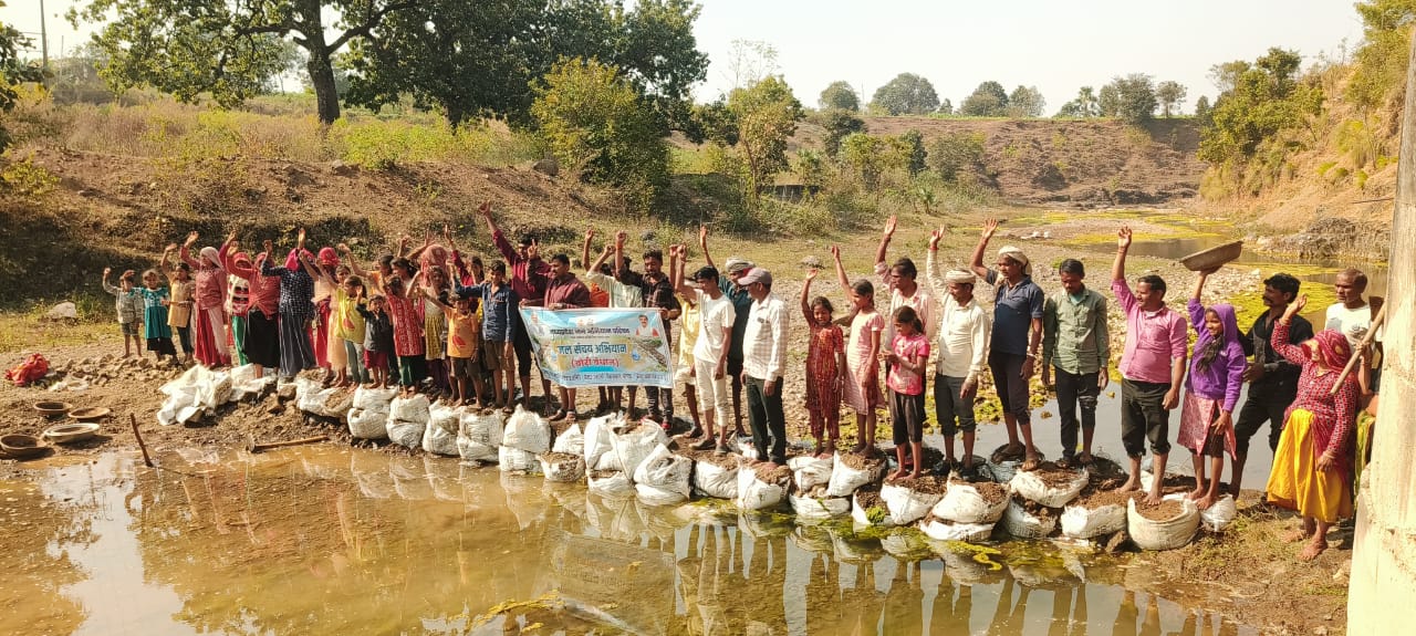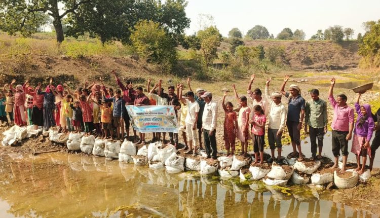 सिंचाई के लिए बोरी बंधान कर जल संग्रह किया