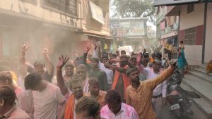 थांदला। उत्तर प्रदेश सहित अन्य राज्यों में मिली जीत से उत्साहित भाजपाई कार्यकर्ताओं ने जमकर जश्न मनाया। उत्साहित बाजपाई कार्यकर्ताओं ने नगर में बुलडोजर के साथ फाग यात्रा निकाली। यूपी चुनाव में बुलडोजर एवं साइकिल के विशेष महत्व को मद्देनजर , भाजपा कार्यकर्ताओं ने बुलडोजर के अंदर उल्टी साइकल रखकर पूरे नगर में विजय जुलूस निकाला। विजय जुलूस के दौरान बड़ी संख्या में भाजपा कार्यकर्ता गुलाल से रंगे हुए एवं फाग यात्रा में सम्मिलित दिखाई दिए। भाजपा कार्यकर्ताओं ने जगह-जगह आतिशबाजी भी की साथी डीजे की धुन पर नाचते नजर आए।