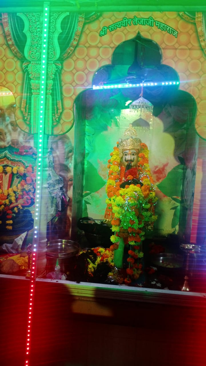 नगर के तेजाजी मंदिर एवं खेजड़ा नाहरपुरा स्थित सत्य वीर तेजाजी मंदिर पर कोविड-19 नियमों के तहत तेजाजी जन्मोत्सव मनाया गया। दोनों ही मंदिरों पर श्रंगार, महाआरती, एवं ताती तोड़ने का आयोजन किया गया। तेजाजी मंदिर पर पुजारी मांगीलाल राठौड़, जानकीलाल राठौड़, मोहनलाल राठौड़, रामचंद्र राठौड़ की उपस्थिति में महा आरती का आयोजन किया गया। वहीं खेजड़ा नाहरपुरा में राजेश वसुनिया सहित ग्रामीण श्रद्धालुओं ने उपस्थित होकर महा आरती का लाभ लिया। राठौर समाज के अध्यक्ष एवं पार्षद वार्ड क्रमांक 2 लक्ष्मण राठौड जो कि अभी कंटेनमेंट झोन में है ने समाज जनों को तेजा दशमी की शुभकामना देते हुए कहा कि सहित राठौड समाज में कोरोनावायरस अपने पैर जमा था जा रहा है, सभी समाज जनों से निवेदन है कि वह सतर्क रहें, किसी भी प्रकार के लक्षण दिखने पर अपनी जांच करवाएं, एवं उक्त महामारी से लड़ने में प्रशासन की मदद करें।