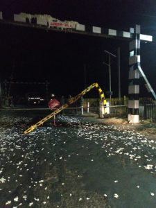थांदलारोड़ थांदला-मेघनगर मार्ग पर स्थित सजेली रेलवे फाटक गेट नंबर 61 SPL पर खुली फाटक में तेज गति से आ रहे कपास के ओवरलोड ट्रक क्र. MP 45 H 6633 टकरा गया जिससे हाइट गेज डेमेज हो गया व एक साइड की फाटक टूट गई जिससे दोनों तरफ ट्रैफिक जाम हो गया है व ड्राइवर ट्रक वही छोड़ कर भाग गया है।फाटक सुधार का काम शरू कर दिया है। मोके पर थांदलारोड़-मेघनगर Pw मनीष मीणा उपस्थित है उन्होंने बताया सडक मार्ग पर यातायात चालू होने में करीब एक से डेढ़ घंटे का समय लग सकता है।