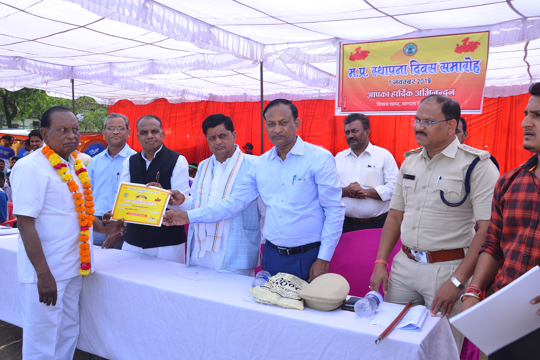 स्थानीय दशहरा मैदान पर मध्यप्रदेश स्थापना दिवस मनाया गया। अवसर पर ध्वजारोहण विधायक वीरसिंह भूरिया द्वारा किया गया व राष्ट्रगीत एवं मध्यप्रदेश गान के उपरान्त मुख्यमंत्री के संदेश वाचन विधायक द्वारा किया गया। स्थापना दिवस के अवसर पर स्कूली बच्चों द्वारा सांस्कृतिक कार्यक्रम की प्रस्तुति दी गई। अवसर पर देहदान करने वाले समाजसेवी समरथमल तलेरा एवं सेवानिवृति के उपरान्त भी अपनी नि:शुल्क सेवा देने वाली समाजसेवी चन्द्रकला गार्डन का सम्मान किया गया व लोकसभा एवं विधानसभा के निर्विध्न संपन्न चुनाव हेतु कर्मचारियों एवं पदाधिकारियों का सम्मान भी किया गया। कार्यक्रम में नपं अध्यक्ष बंटी डामोर, उपाध्यक्ष मनीष बघेल, अनुविभागीय अधिकारी आरएस बघेल, एसडीओपी एमएस गवली, तहसीलदार मधु नायक, वरिष्ठ कांग्रेसी नेता नगीन शाह, चेनसिंग डामोर समेत पार्षद,जनप्रतिनिधि एवं कर्मचारीगण उपस्थित रहे। कार्यक्रम का संचालन अब्दुल हक खान एवं राजेश वैद्य ने किया व आभार जनपद सीईओ आरसी हालु ने माना।