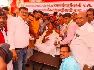 थांदला। करीब पांच वर्ष पश्चात थांदला की पावन धरा पर जिन शासन के राजा पुण्य सम्राट श्रीमद विजय जयंतसेन सूरीश्वरजी महाराज के पट्टधर शिष्य रत्न राजकिय अतिथि का दर्जा प्राप्त गच्छाधिपति श्रीमद विजय नित्यसेन सूरीश्वरजी म.सा. आदि ठाणा 11 व साध्वी रत्ना का भव्य मंगल प्रवेश हुआ। मंगल प्रवेश में विभिन्न स्थानों से आये श्रीसंघ की महिलाओं ने गहुली प्रतियोगिता में भाग लेकर आकर्षक गहूली बनाई व गुरुदेव का आशीर्वाद प्राप्त किया।