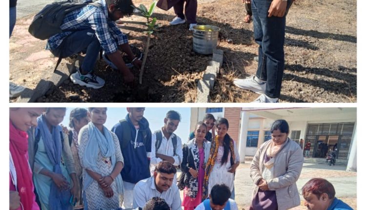 थांदला।  आज रेड रिबन क्लब के तत्वाधान में शासकीय महाविद्यालय मेघनगर में भारतीय ज्ञान परंपरा प्रकोष्ठ के अंतर्गत भाषण प्रतियोगिता में संभाग स्तर पर प्रथम आए छात्र श्री शैलेंद्र भूरिया तथा जिला स्तर पर भाग लेने वाले छात्र-छात्राओं का अभिनंदन किया। इस अवसर पर संस्था की प्राचार्य प्रोफेसर मौलश्री कानुड़े द्वारा महाविद्यालय परिसर में छात्रों के साथ पौधारोपण किया। रेड रिबन क्लब प्रभारी ने बताया कि संपूर्ण वर्ष भर रेड रिबन क्लब द्वारा समय-समय पर वृक्षारोपण सफाई एवं स्वास्थ्य जागरूकता कार्यक्रम किए जाते रहे हैं। उसी क्रम में आज महाविद्यालय का नाम रोशन करने वाले छात्र-छात्राओं द्वारा क्लब में पोधारोपण करवाया। इस अवसर पर भारतीय ज्ञान परंपरा प्रकोष्ठ प्रभारी डॉ रेखा खरे एवं संपूर्ण स्टाफ तथा बड़ी संख्या में छात्र-छात्राएं मौजूद थे