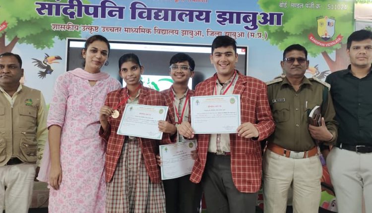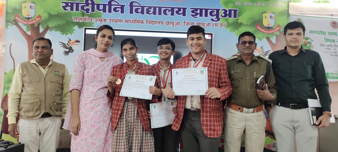 उत्कृष्ट विद्यालय झाबुआ में आयोजित इस प्रतियोगिता में जिले के कुल 67 विद्यालयों ने सहभागिता की जिसमें संस्कार पब्लिक स्कूल के हिम नितेश शाहजी, नीर मनोज जैन और सोनम रामनरेश जायसवाल  संस्था की शिक्षिका दिव्यानी सोनी के मार्गदर्शन में  उत्कृष्ट प्रदर्शन करते हुए प्रथम स्थान हासिल करने के साथ ही  प्रदेश स्तर पर होने वाली प्रश्नमंच प्रतियोगिता में झाबुआ जिले के प्रतिनिधित्व हेतु भी चयनित किए गए। विभाग द्वारा विद्यार्थियों को गोल्ड मेडल और प्रमाण पत्र दिया गया। विद्यार्थियों की इस उपलब्धि पर संस्था के प्राचार्य ललित कांकरिया ने कहा कि  यह सफलता आपकी लगन, परिश्रम, एकाग्रता और ज्ञान के प्रति जिज्ञासा के कारण ही संभव हुई है। सीमित समय में सोच-समझकर सही उत्तर देना आपकी प्रतिभा और आत्मविश्वास का प्रमाण है।एकेडमिक डायरेक्टर ममता कांकरिया, डायरेक्टर श्रीयक कांकरिया और वाइस प्रिंसिपल आदित्य शर्मा सहित पूरे स्टाफ ने अपनी बधाई एवं शुभकामनाएं प्रेषित की।