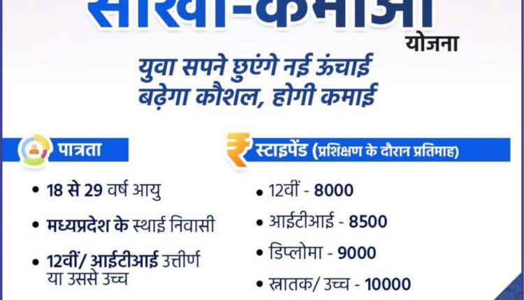 थांदला। “आत्मनिर्भर भारत” बनाने की दिशा में मध्यप्रदेश शासन द्वारा “मुख्यमंत्री सीखो- कमाओ” योजना का शुभारंभ 4 जुलाई से हो रहा है। इसके अंतर्गत 18 से 29 वर्ष आयु के युवक- युवतियां जो मध्य प्रदेश के स्थाई निवासी हैं तथा जिन्होंने हायर सेकेंडरी या आईटीआई या डिप्लोमा या उससे उच्च शिक्षा प्राप्त  हैं, उनके लिए पंजीकृत संस्थाओं से लघु उद्योग, स्वरोजगार का प्रशिक्षण दिया जाएगा।
