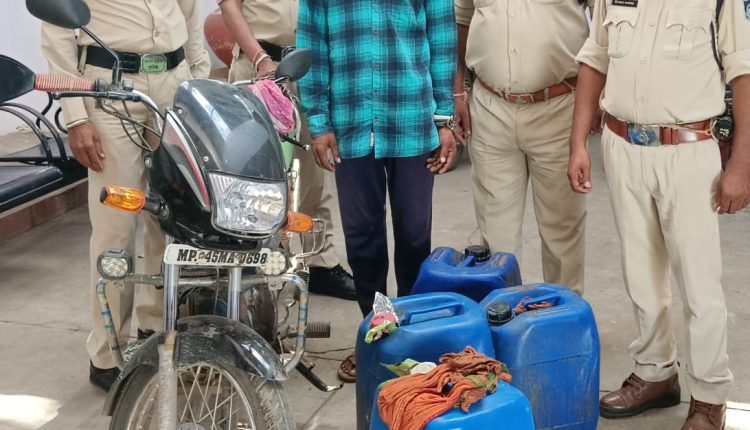 कस्बा थांदला मे सजन पिता प्रेमचंद सिंगाडिया उम्र 32 साल निवासी खरडु बडी थाना झाबुआ को एक सुपर स्पलेन्डर मोटरसायकल पर मोटरसाकल के पीछे दोनो तरफ कैनो मे पाउडर निर्मित अवैध ताडी ले जाते हुये पकडा मौके पर आरोपी के कब्जे से 110 लीटर ताडी कीमती करीबन 22000 रूपये की ,एक स्पलेन्डर मोटरसाकल सहित जप्त कर थाना थांदला पर आरोपी सजन सिंगाडिया के विरूध्द अपराध क्रमांक 367/2023 धारा 34(2),49(ए) आबकारी एक्ट का पंजीबध्द कर विवेचना मे लिया गया ।