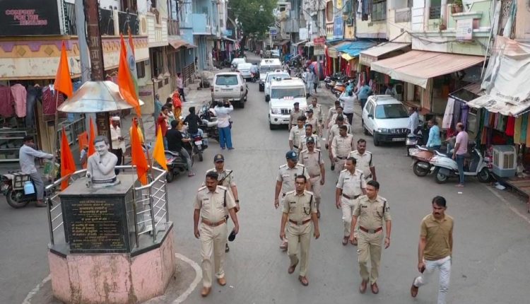 पुलिस प्रशासन ने नगर में निकाला फ्लेग मार्च
